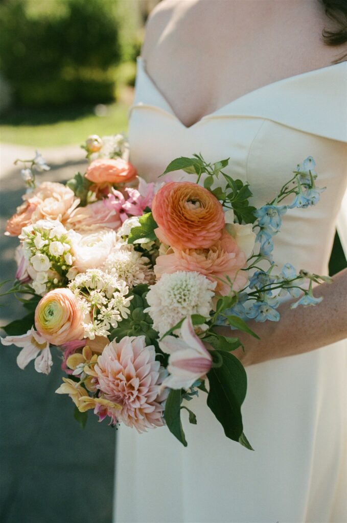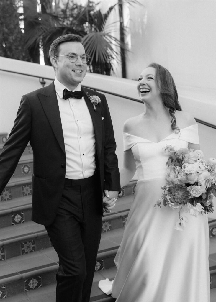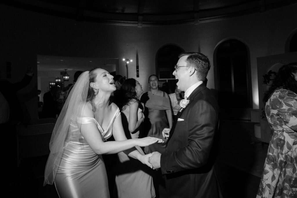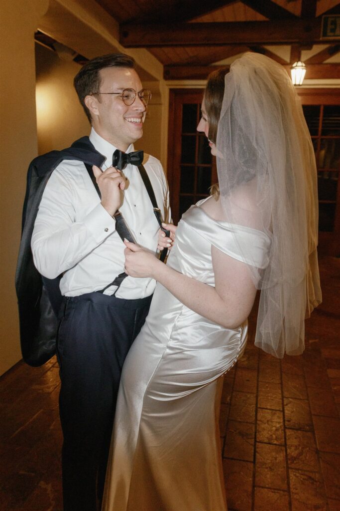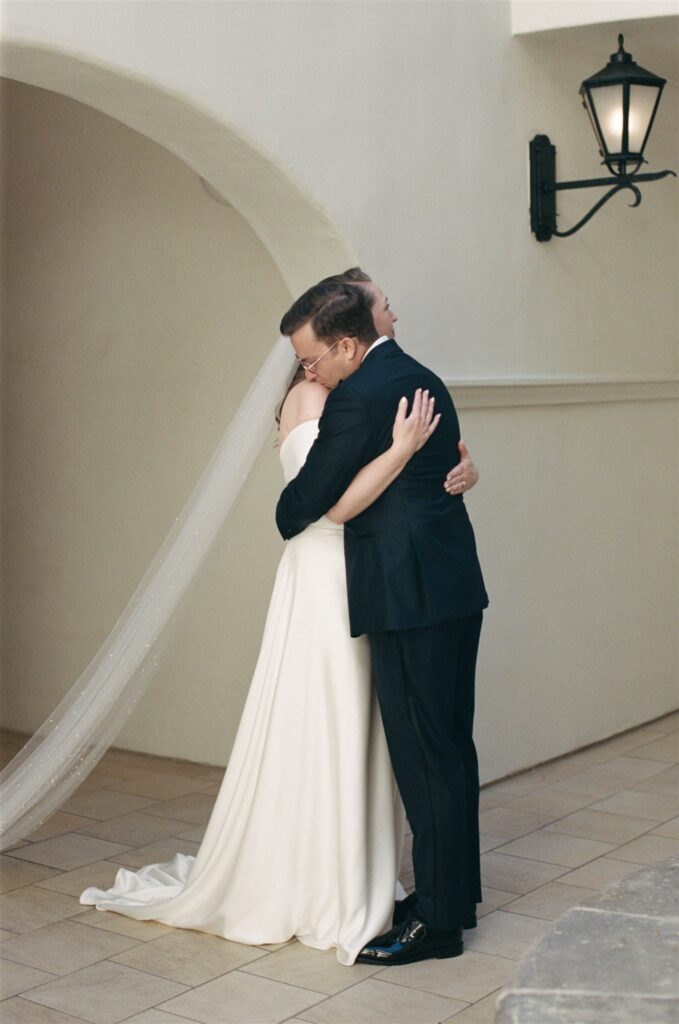 Kendall’s love of literature shone through in charming touches like the postcard-style guest sign-in, the “Library Bar” during cocktail hour, and the bookmark name cards at the reception. Schyler’s minimalist, refined aesthetic provided the perfect counterbalance, creating a harmonious blend that captured their relationship’s effortless balance.